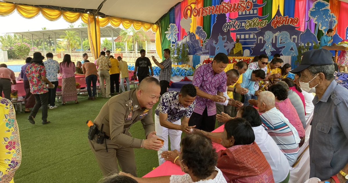 พ.ต.อ.ชาญชัย งามธุระ ผกก.สภ.บางแก้วฯ ร่วมกิจกรรม สงกรานต์รื่นเริง สุขใจ วิถีไทย สู่สากล และ การสรงน้ำพระพุทธรูป รดน้ำขอพรผู้สูงอายุ