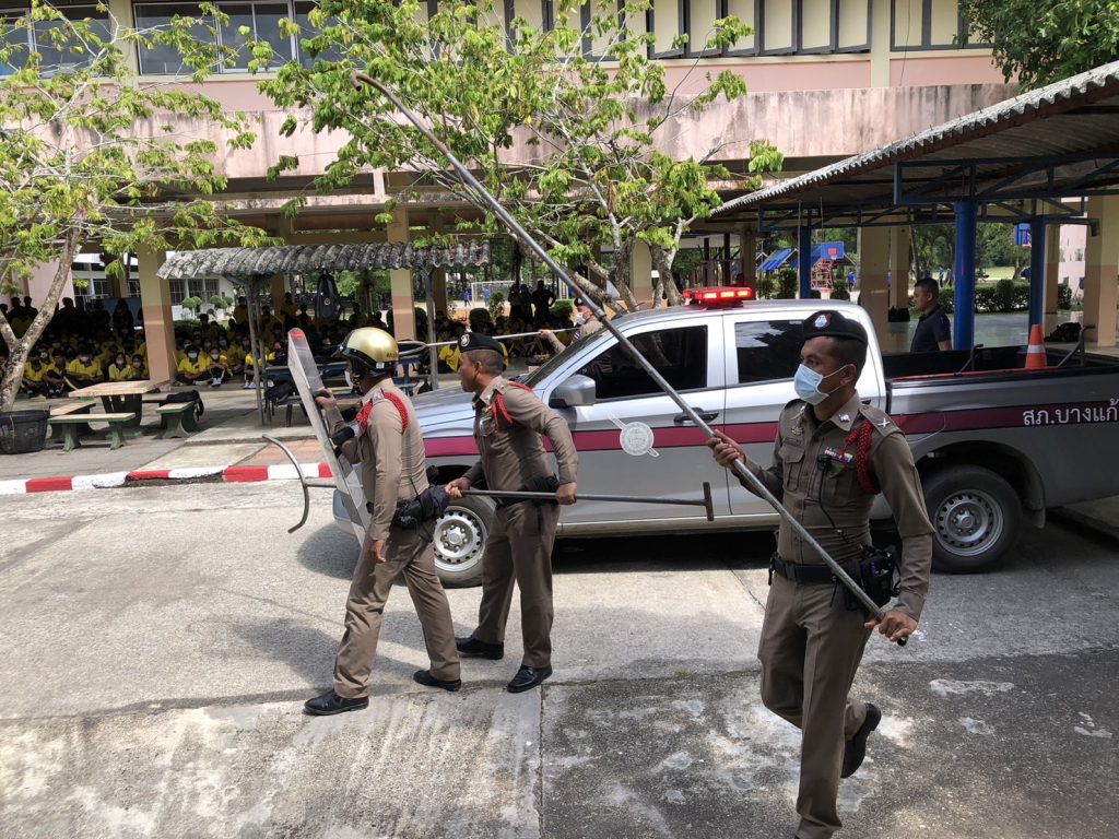 9 ต.ค.67 เวลา 14.00 น. - พ.ต.อ.ชาญชัย งามธุระ ผกก.สภ.บางแก้วฯ - พ.ต.ท.มนตรี อนันต์ รอง ผกก.ป.สภ.บางแก้วฯ ร.ต.อ.ภูพิพัฒ ขุนพิทักษ์ รอง สวป.ฯ/ร้อยเวร 20 พร้อม ชป.รถยนต์ และ สายตรวจรถจักรยานยนต์ บรรยายให้ความรู้ ในเรื่อง วิธีเอาตัวรอดจากเหตุกราดยิง (Active Shooter) และ เหตุบุคคลคลุ้มคลั่ง แก่นักเรียน โรงเรียนบางแก้วพิทยาคม พร้อมทั้ง ซักซ้อมแผนเผชิญเหตุบุคคลคลุ้มคลั่ง ในสถานศึกษา ณ โรงเรียนบางแก้วพิทยาคม ต.โคกสัก อ.บางแก้ว จ.พัทลุง