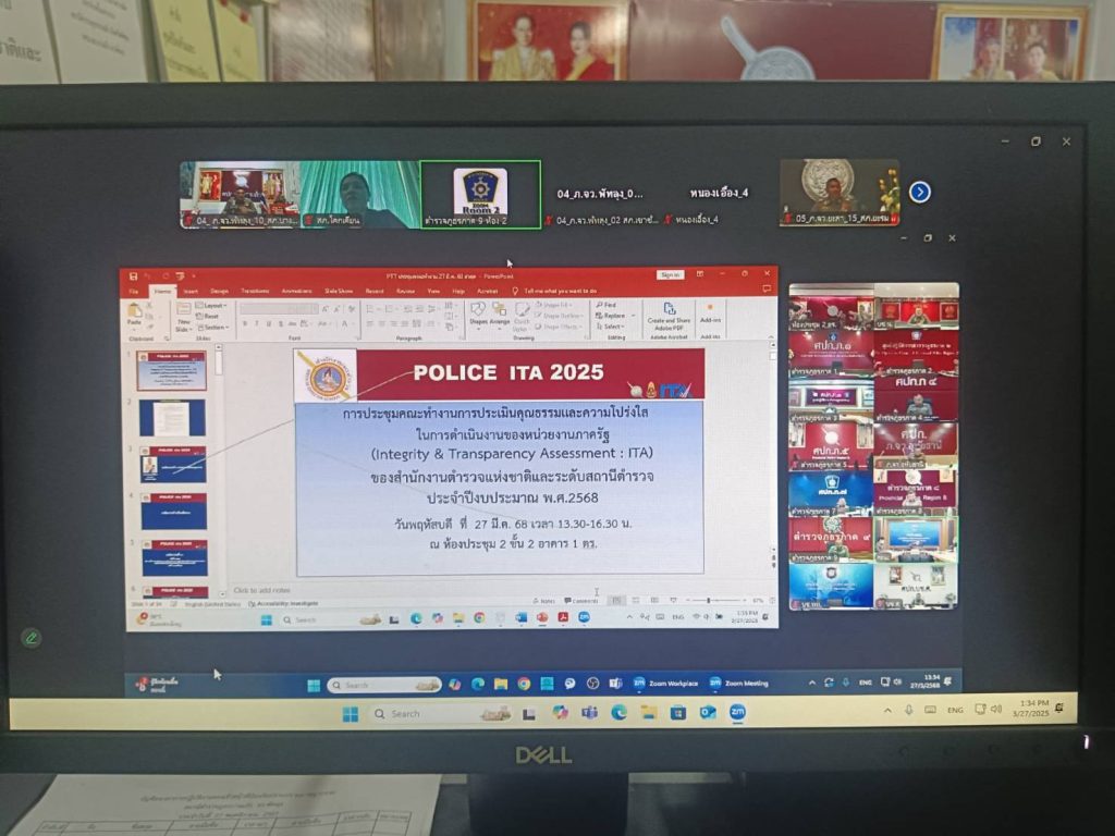 เมื่อวันที่ 27 มีนาคม พ.ศ. 2568 เวลา 13.30 น. พ.ต.อ.พรชัย ขวัญปัญญา ผกก.สภ.บางแก้ว , พ.ต.ท.ยุรสิทธิ์ พันธุ์ชนะพล รอง ผกก.ป.ฯ,พ.ต.ท.สัญญา มอหะหมัด สวป.ฯ,พ.ต.ท.ฉลอง ขุนภักดีสว(สอบสวน)ฯ,พ.ต.ท.วิโรจน์ ฤทธิบูรณ์ สว.อก.ฯ,พ.ต.ท.กวิน นิติธรรมตระกูล สว.สส.ฯ,หัวหน้างานจราจร,เจ้าหน้าที่ธุระการทุกแผนกงาน แสดงเชิงสัญลักษ์ว่าจะไม่รับของขวัญของกำนัลทุกชนิดจากการปฏิบัติหน้าที่ และเฝ้าฟังการประชุมคณะทำงานติดตามการประเมินคุณธรรมและความโปร่งใสในการดำเนินงานหน่วยงานภาครัฐ (ITA) รูปแบบประชุม conference ผ่านระบบ Zoom ณ ห้องประชุม ศปก.สภ.บางแก้ว